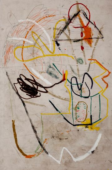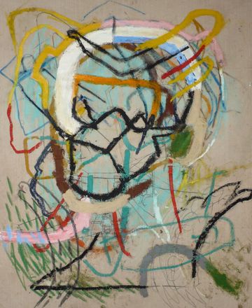 2014, 93" x 104", oil, chalk, charcoal, acrylic, crayon on canvas